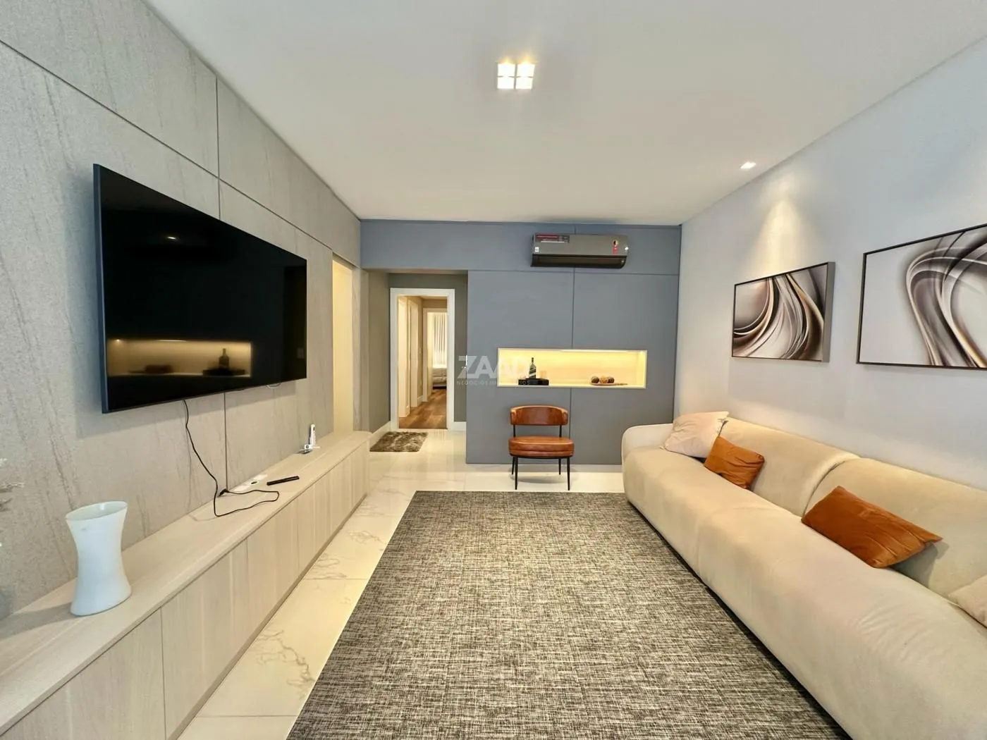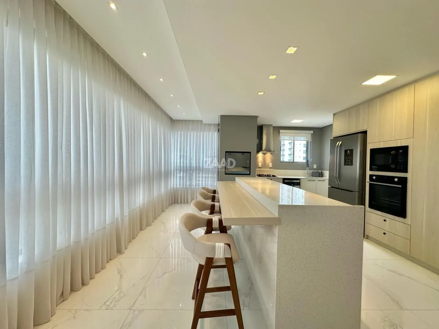 - Living com área gourmet integrada